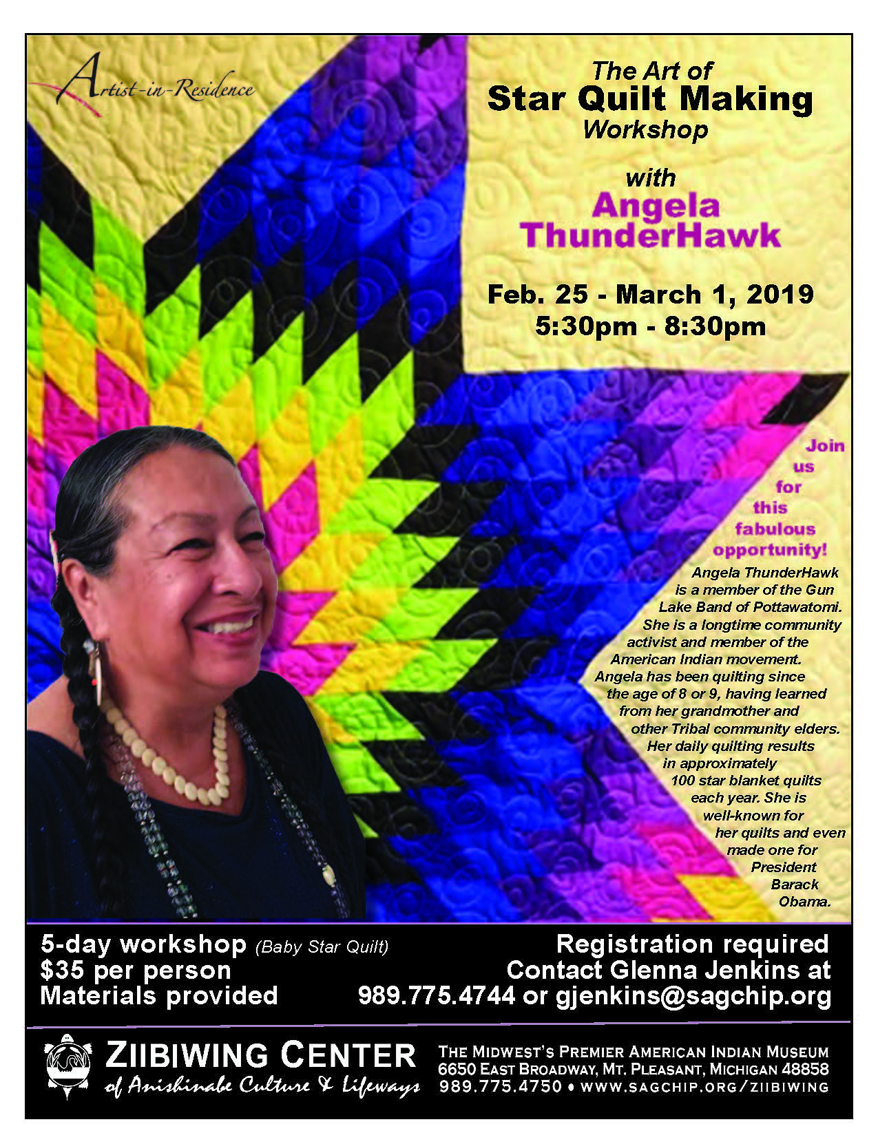 There are a few openings in the quilt workshop. Sign up now with Glenna at gjenkins@sagchip.org or 989.775.4744.