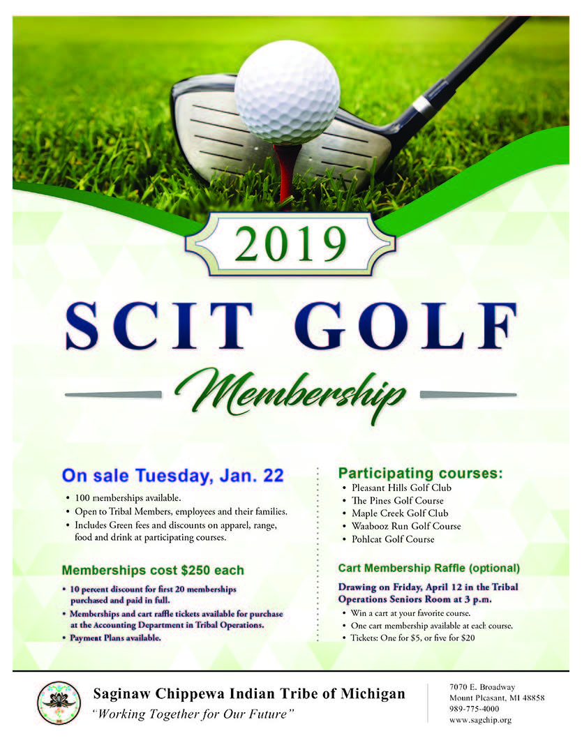 Just a reminder if you have not yet purchased your Golf Membership you still have a few weeks left to do so. Memberships are $250 and include green fees at: Maple Creek, The Pines, Pleasant hills, Pohl Cat and Waabooz Run. Memberships will be on sale until Friday, May 3rd! Also, this Friday, April 12th we will draw 5 lucky winners during the cart membership raffle (One winner for each course and may only win once). If you would like to win a cart membership at one of the five courses make sure to purchase your tickets by this Friday, April 12th at 3 :00 p.m. Those tickets are on-sale now and are $5 each or 5 for $20. The raffle drawing will take place in the T.O. Seniors Room at 3:00 p.m. Please let me know If you have any additional questions.