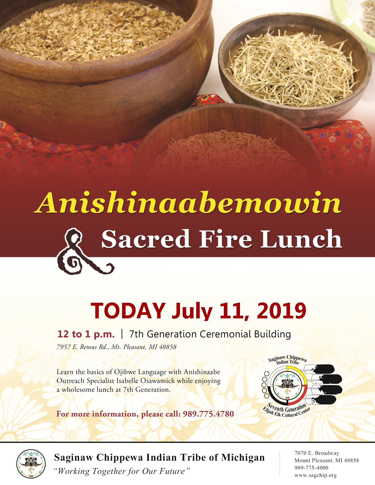 Sacred Fire Lunch - TODAY July 11, 2019