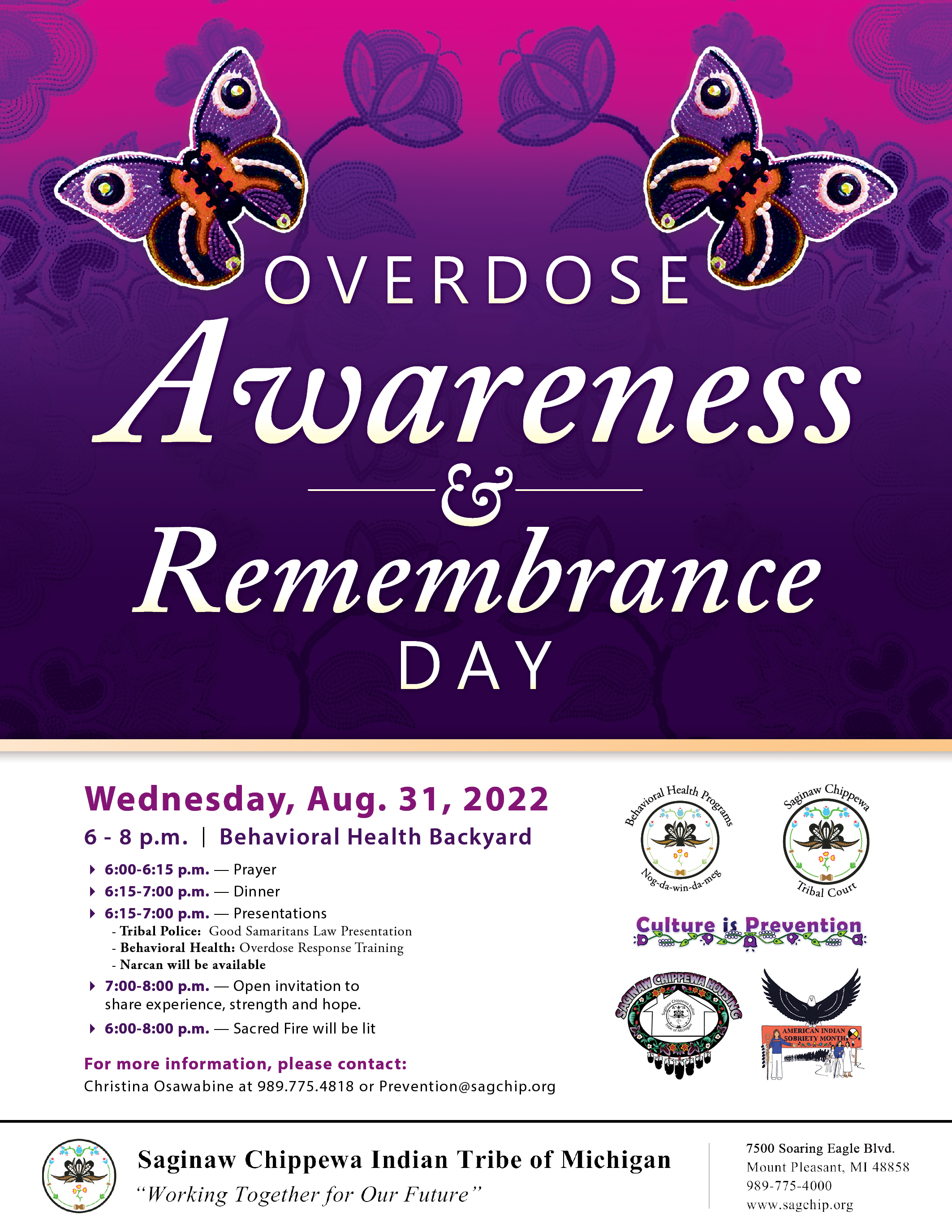 For more information, please contact: Christina Osawabine at 989.775.4818 or Prevention@sagchip.org