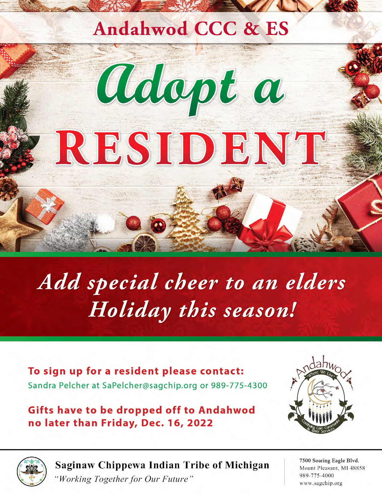 Sandra Pelcher at SaPelcher@sagchip.org or 989-775-4300