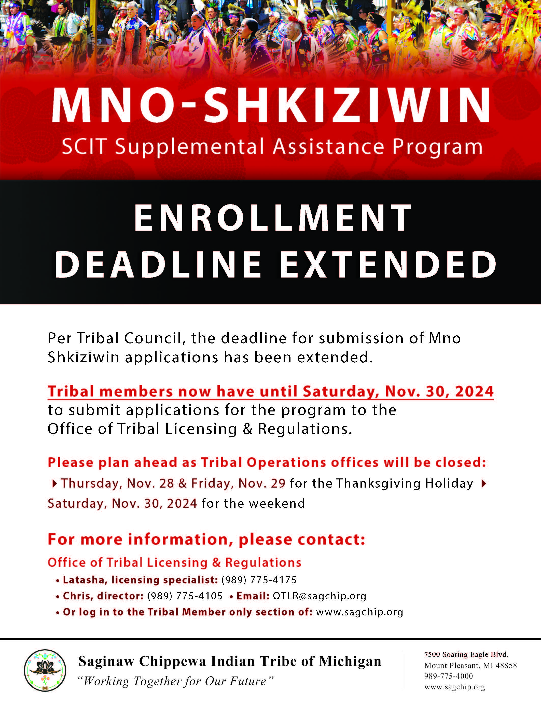 Tribal members now have until Saturday, Nov. 30, 2024 to submit applications for the program to the
