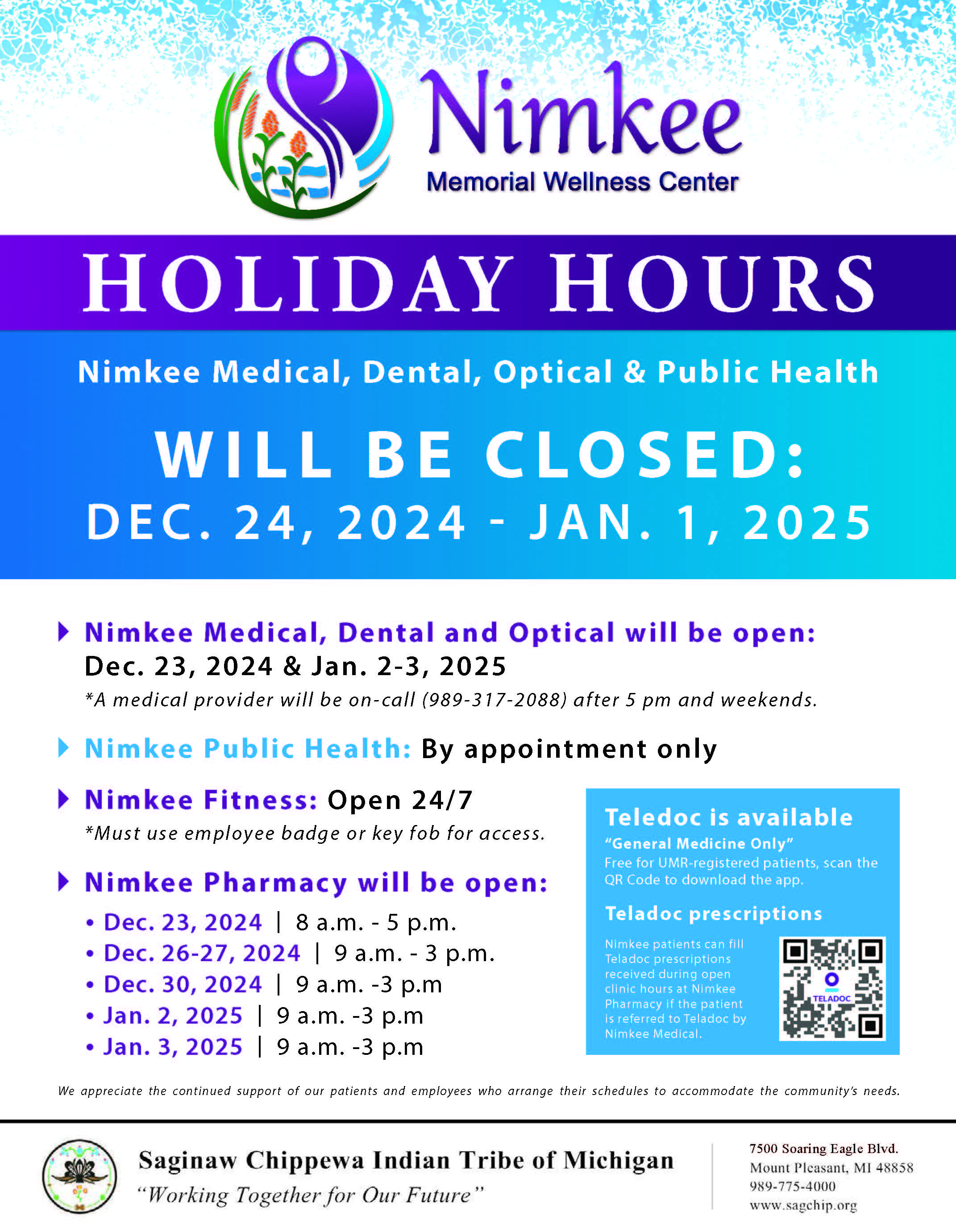 *A medical provider will be on-call (989-317-2088) after 5 pm and weekends.