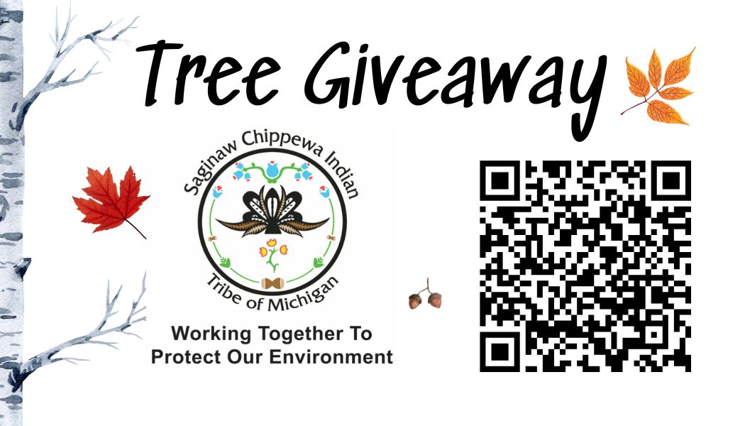The Planning department’s Environmental team and the Saginaw Chippewa Tribal College are hosting a Free Tree Giveaway starting at 10:30 am (until trees are gone) in the Saginaw Chippewa Tribal College’s Parking Lot (5805 E. Pickard St. Mt. Pleasant, MI).