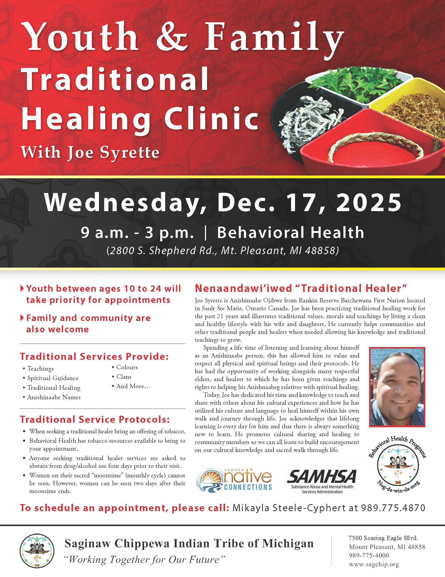 Native Connections its hosting a second Traditional Healing Clinic this month! Community Youth 24 years old and younger are given priority when scheduling but we do have a will call/waitlist available for anyone that is interested in obtaining a time slot.