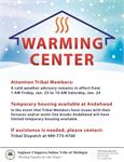 Please see information for SCIT Warming Center location at Andahwod (2910 South Leaton Rd., Mt. Pleasant, MI 48858). For assistance please contact Tribal Dispatch at 989-775-4700. Read More