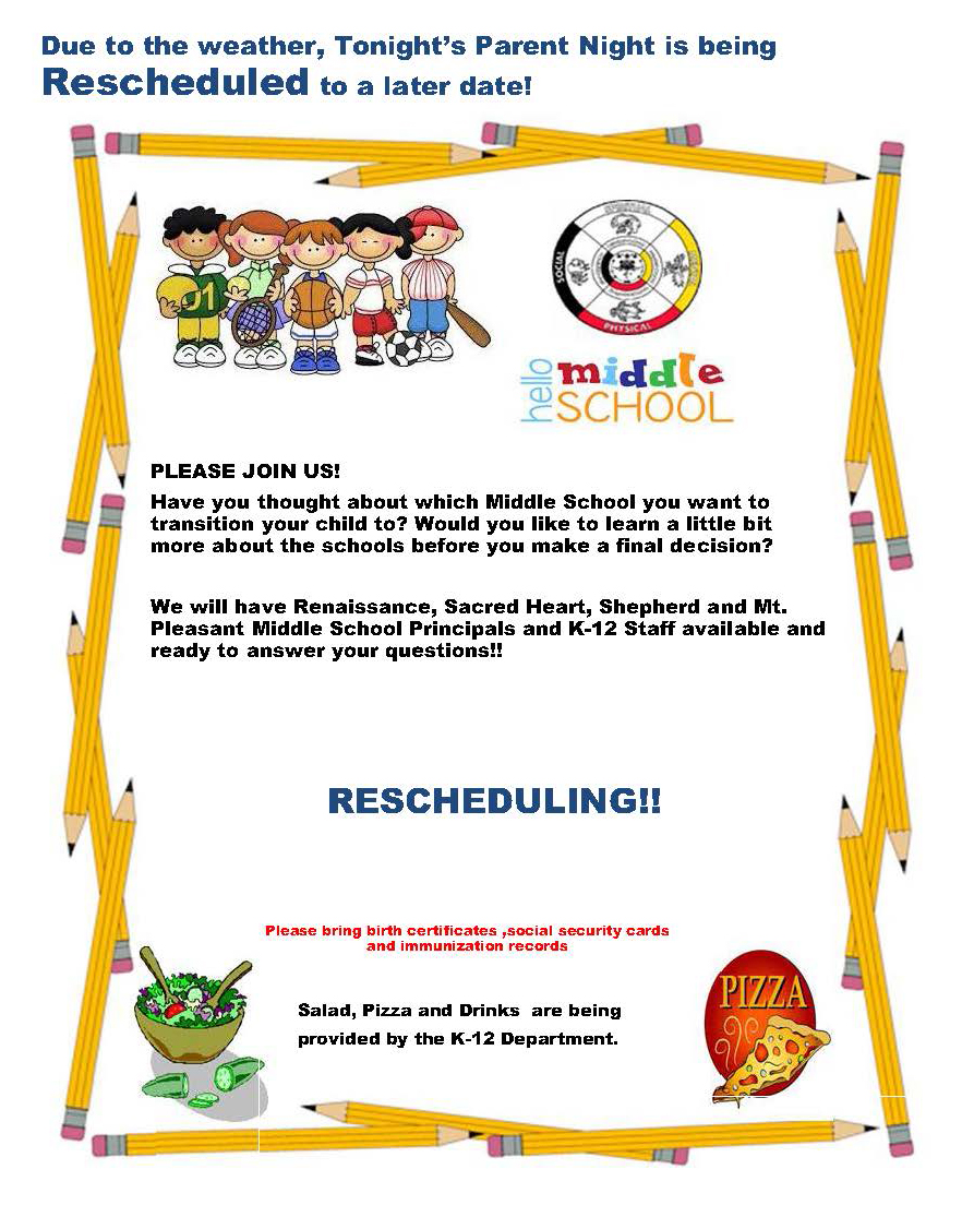 Due to the weather, tonight's parent night is being rescheduled to a later date!