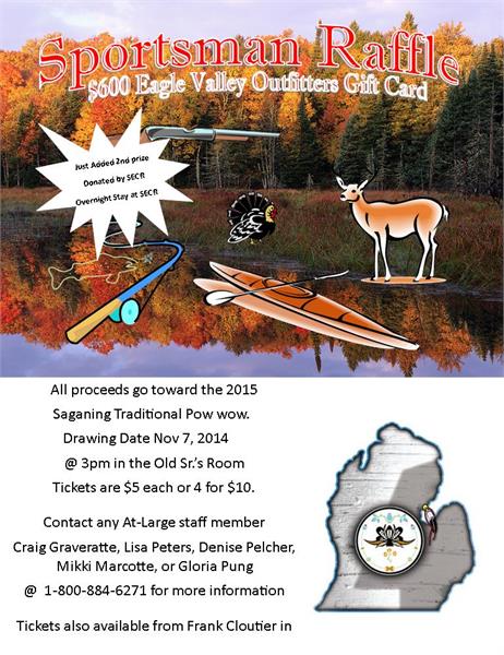 $600 Eagle Valley outfitters Gift Card. All proceeds go toward the 2015 Saganing Traditional Pow wow.