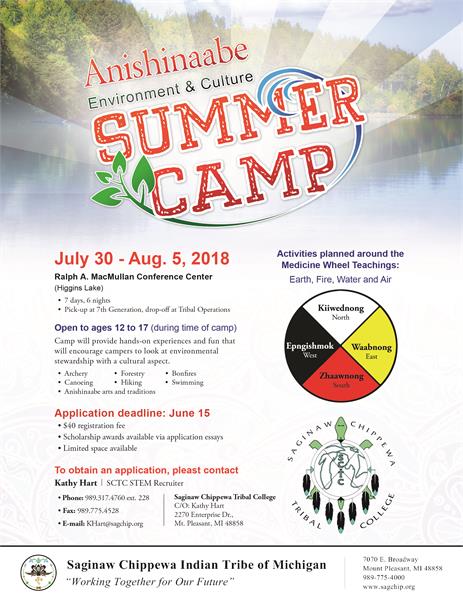 Applications for the 2018 Anishinaabe Environment and Culture Camp are NOW OPEN!! Attached is a fillable PDF form, flyer, and draft agenda. Due to increased interested, we will only be considering complete applications, so please make sure your child fills out the essay portion. Please note that there will also be a $40 registration fee this year to ensure attendance. Applications will close May 31.