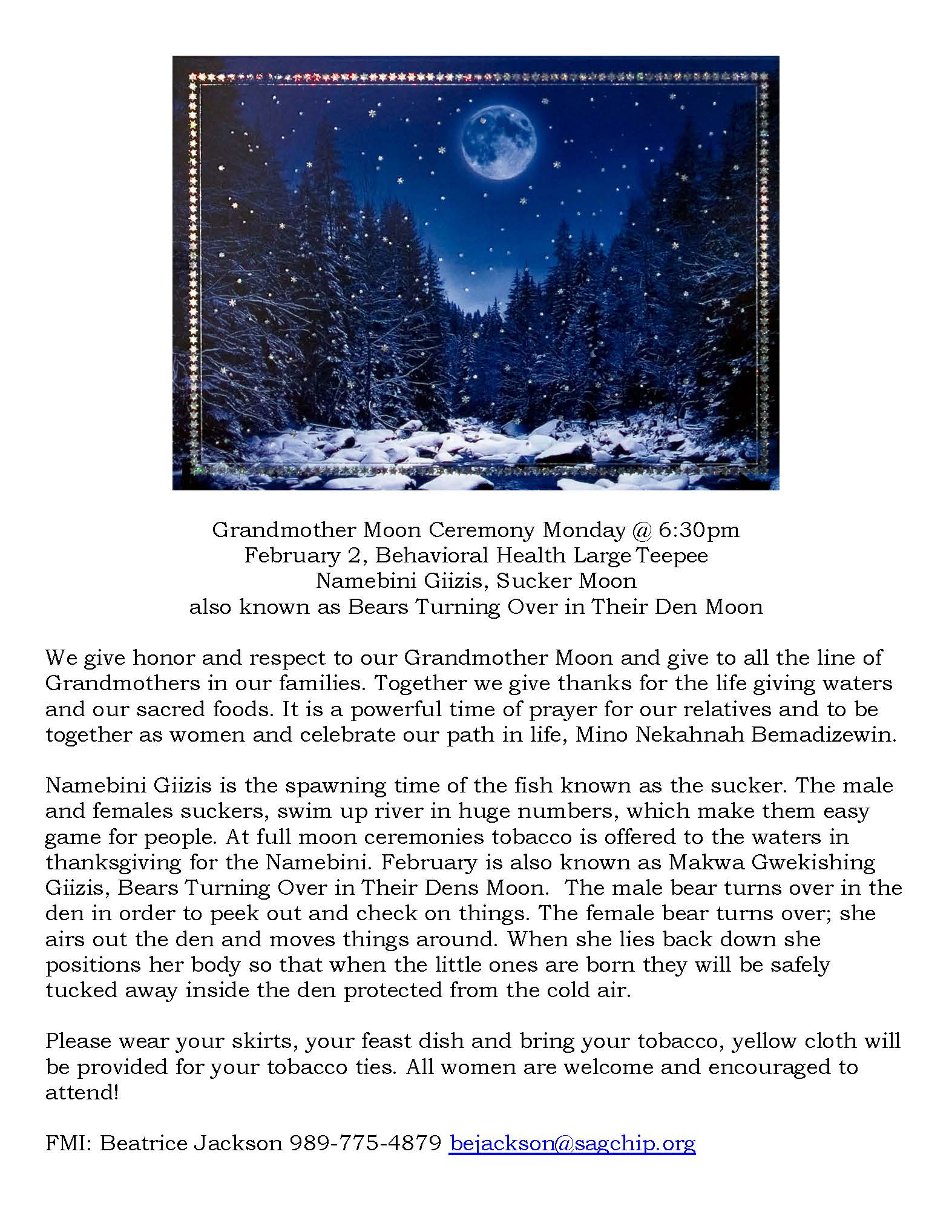 Grandmother Moon Ceremony Monday @ 6:30pm