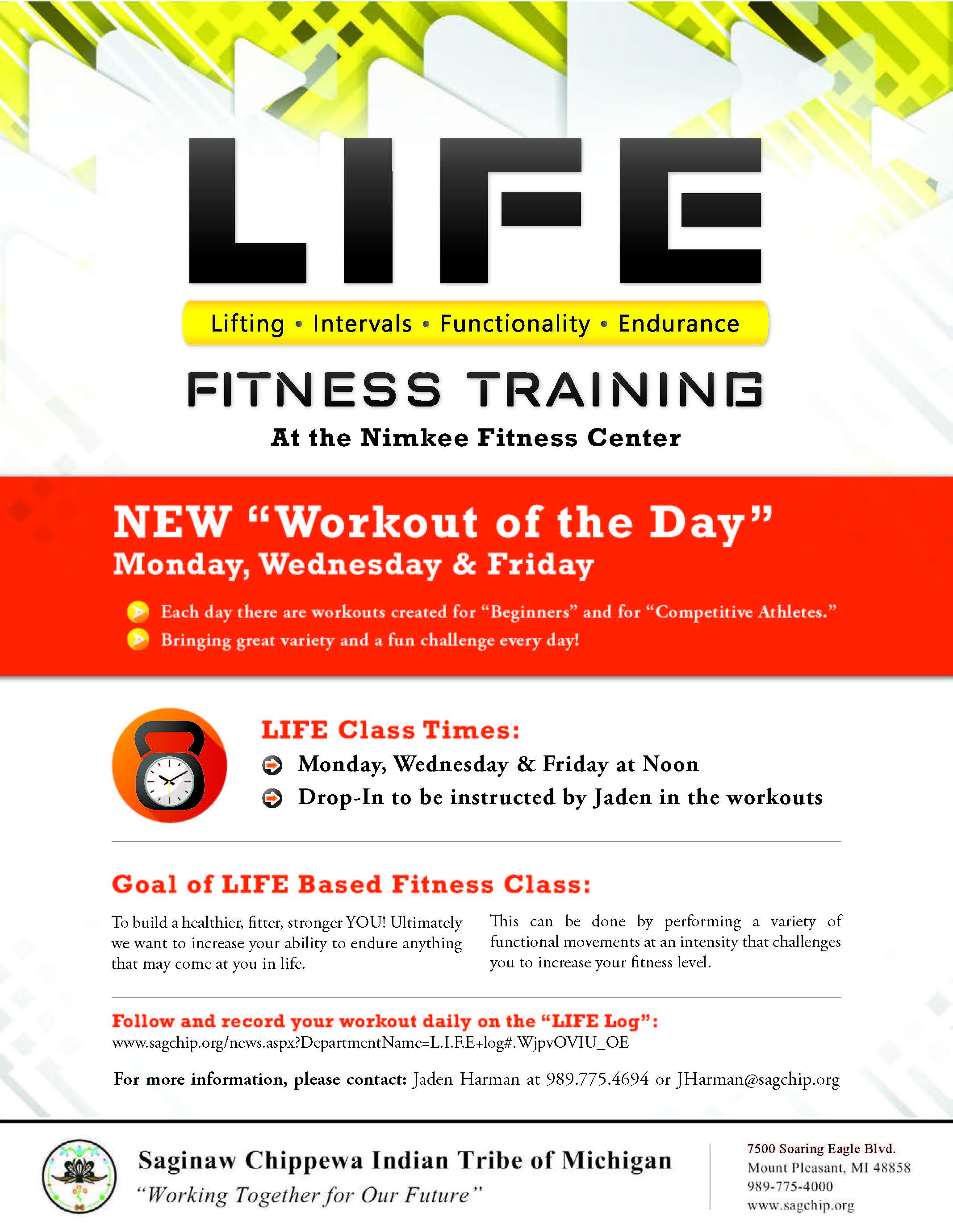 Every Monday, Wednesday, & Friday at Nimkee Fitness we are offering “LIFE” Workouts of the Day for Beginners and Competive Athletes!