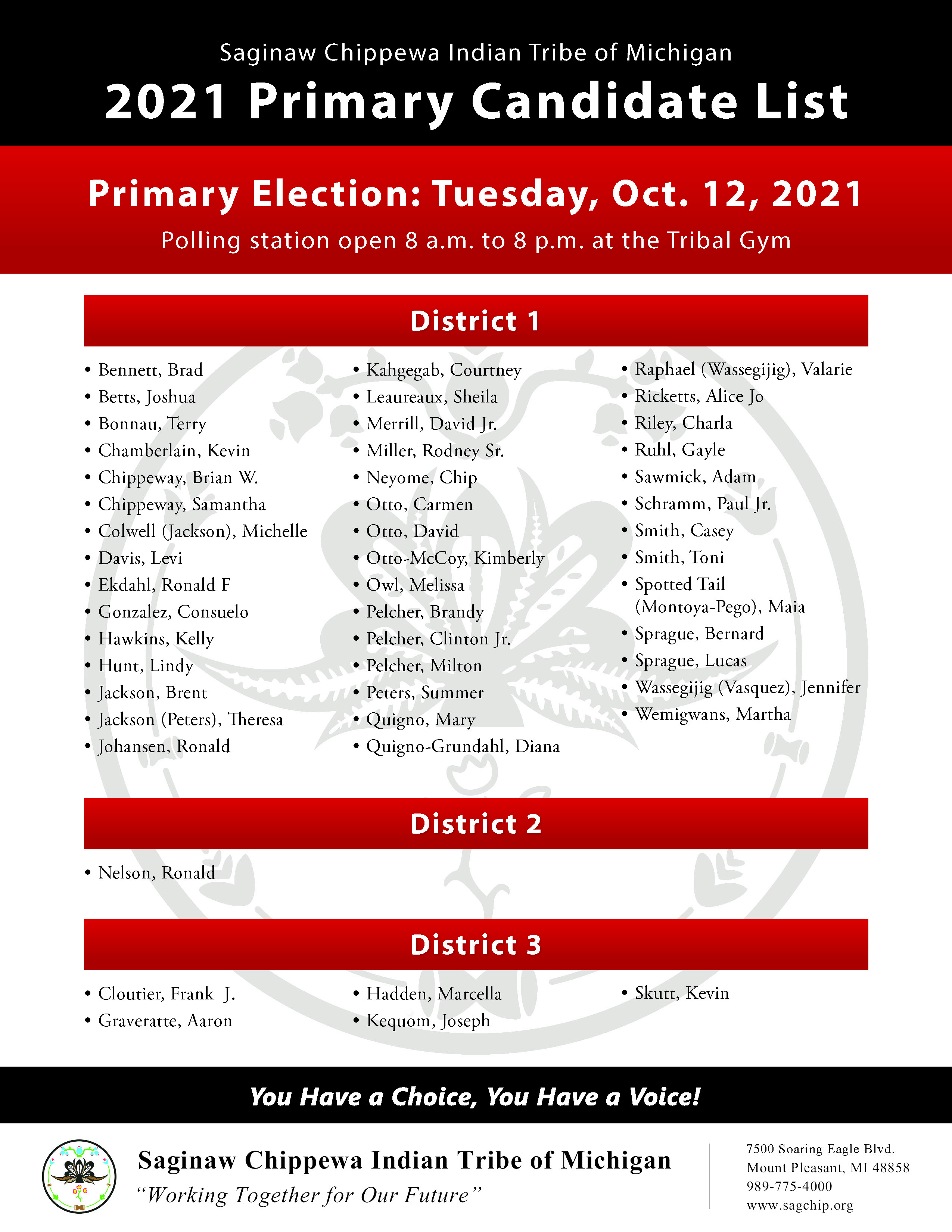 Saginaw Chippewa Indian Tribe of Michigan2021 Primary Candidate List