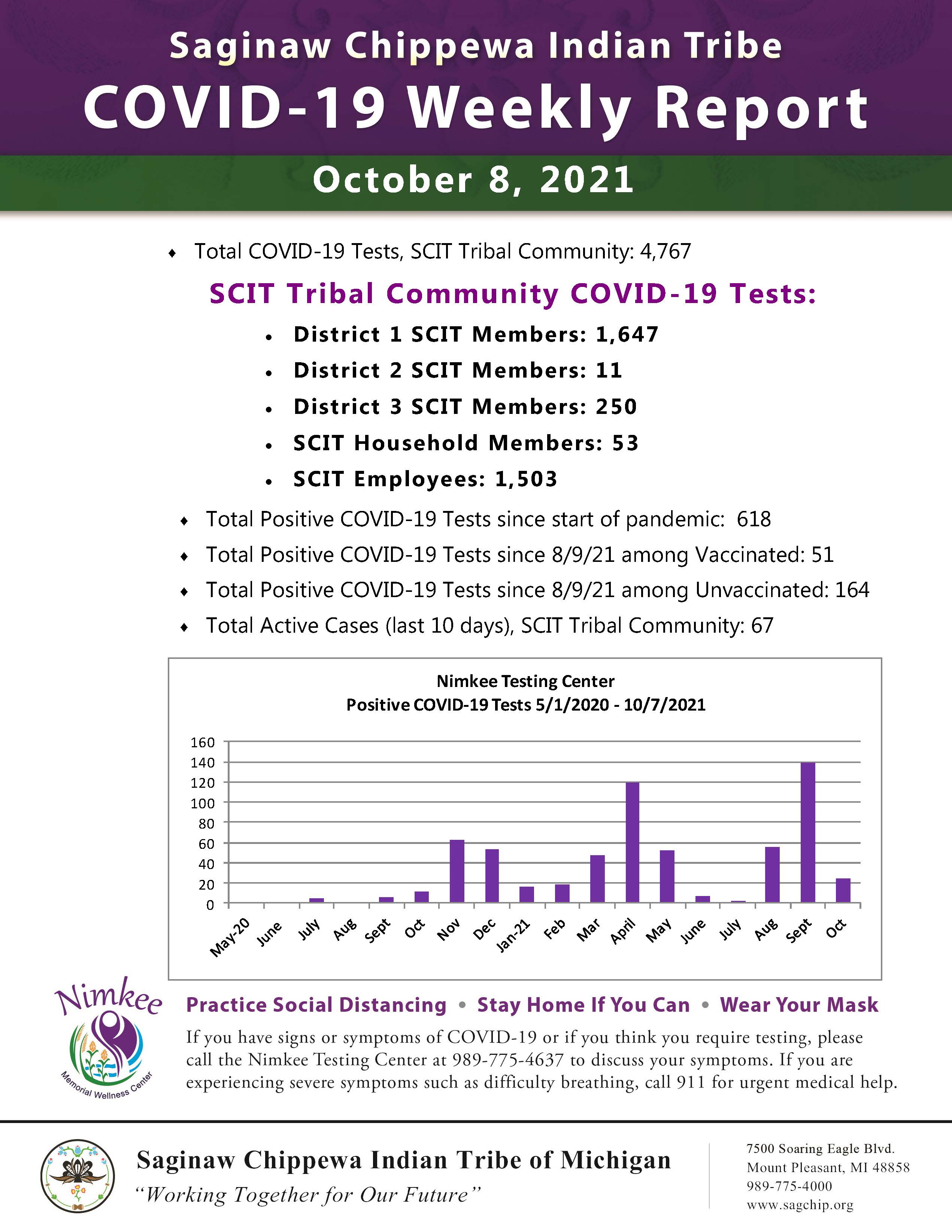 As of August 9th Nimkee Testing Center started tracking positive cases among vaccinated and unvaccinated individuals. Getting vaccinated significantly reduces your risk of severe illness and/or hospitalization if COVID-19 is contracted.
