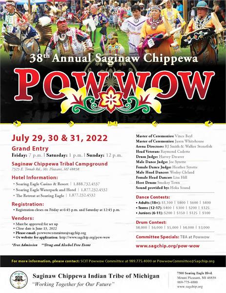 For more information, please contact: SCIT Powwow Committee at 989.775.4000 or PowwowCommittee@Sagchip.org
