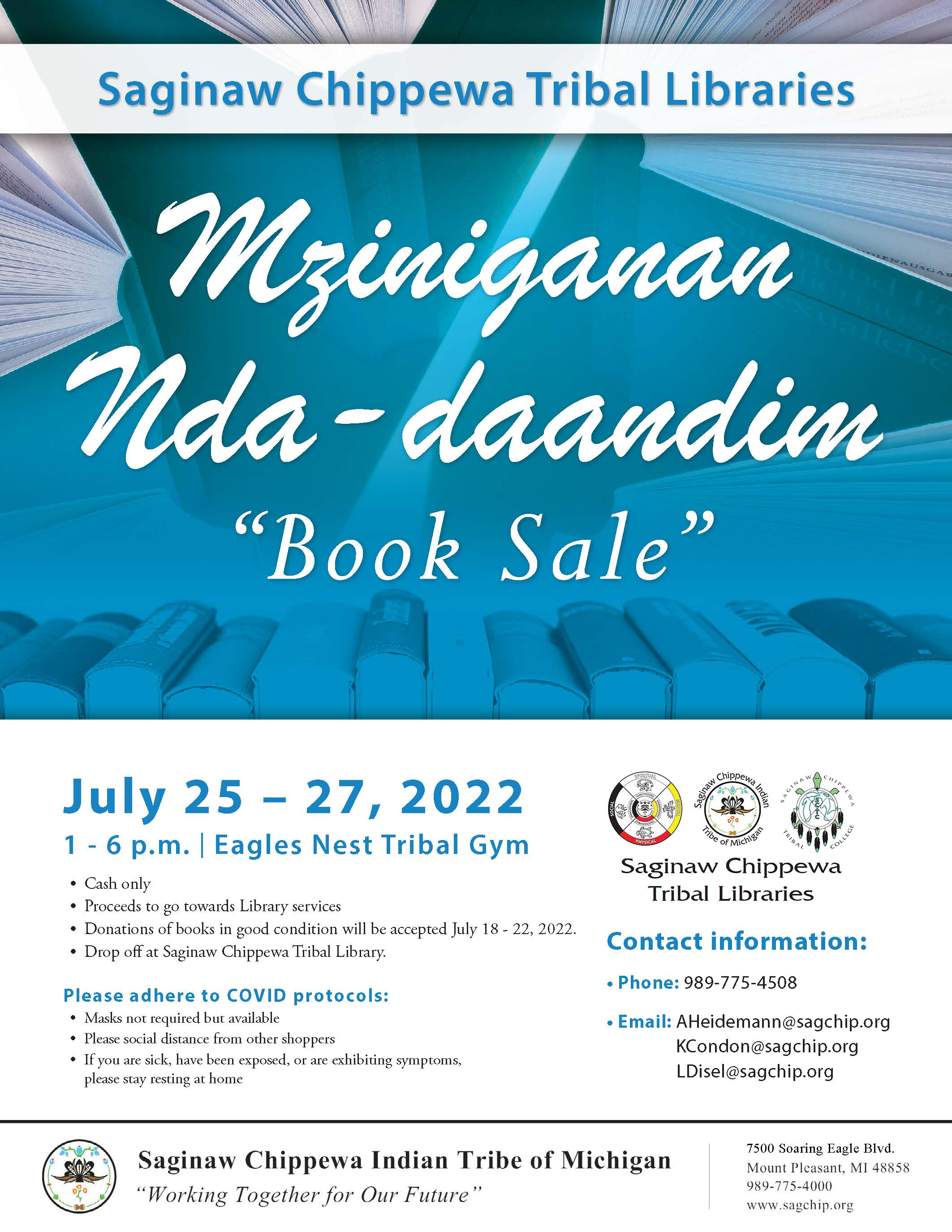 • Drop off at Saginaw Chippewa Tribal Library.