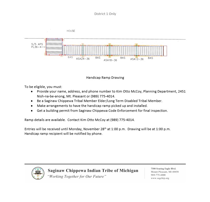 If you meet the requirements (eligibility listed on flyer) for this Handicap Ramp giveaway, please call Kim in the Planning department at (989) 775-4014. Drawing will be held Monday, November 28, 2022.