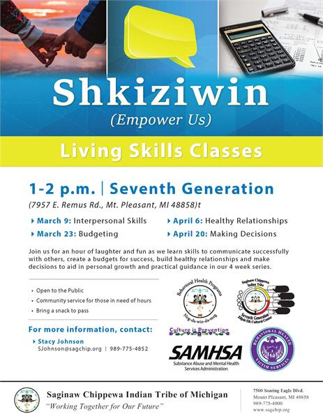 Remember to Join us this Thursday March 9th for Shkiziwin: Living Skills Classes