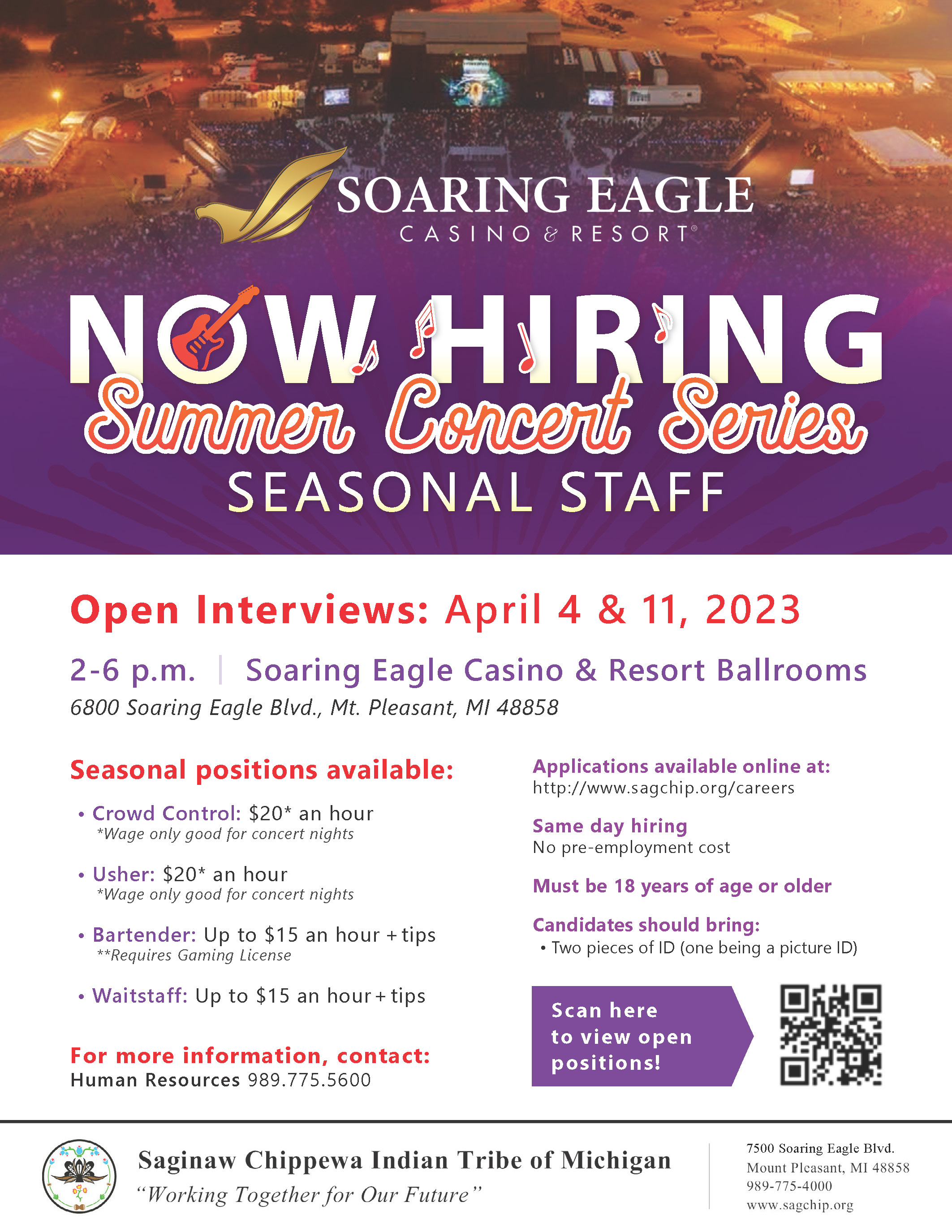 Open Interviews: April 4 & 11, 2023 | 2-6 p.m. | Soaring Eagle Casino & Resort Ballrooms