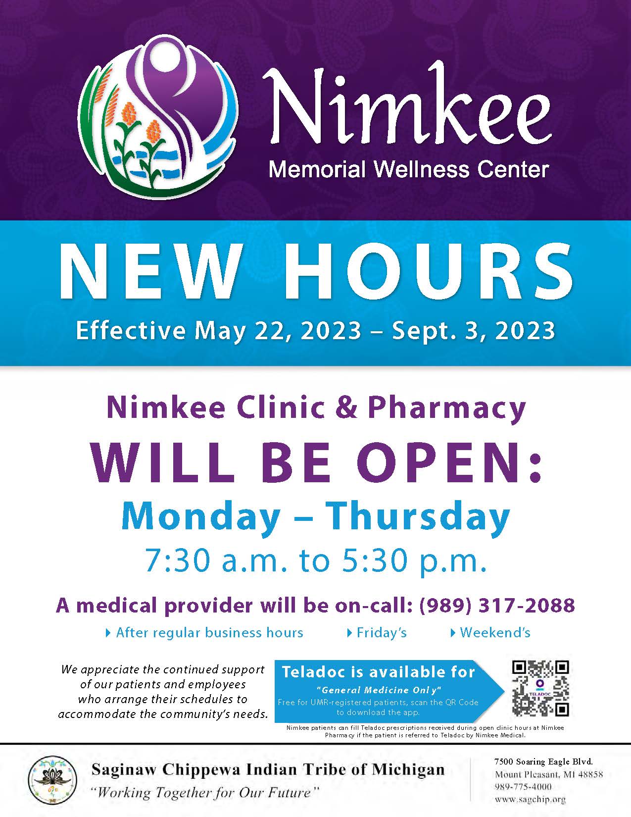 A medical provider will be on-call: (989) 317-2088