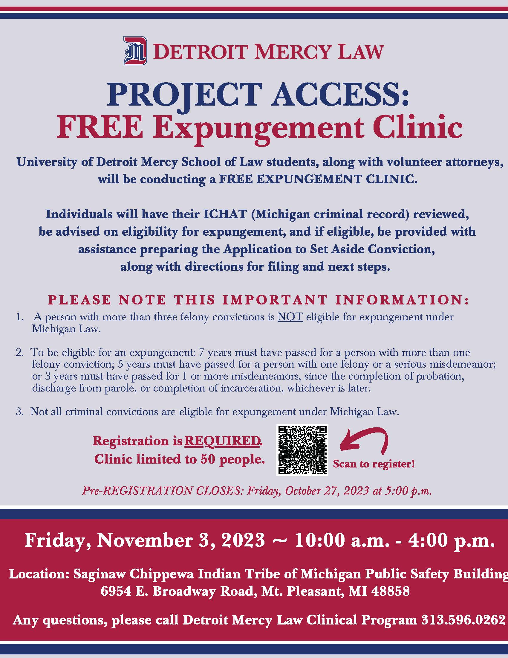 University of Detroit Mercy School of Law students, along with volunteer attorneys, will be conducting a FREE EXPUNGEMENT CLINIC.