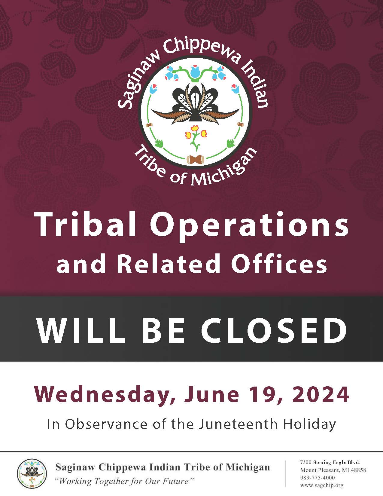 Tribal Operations and Related Offices will be closed. Wednesday, June 19, 2024