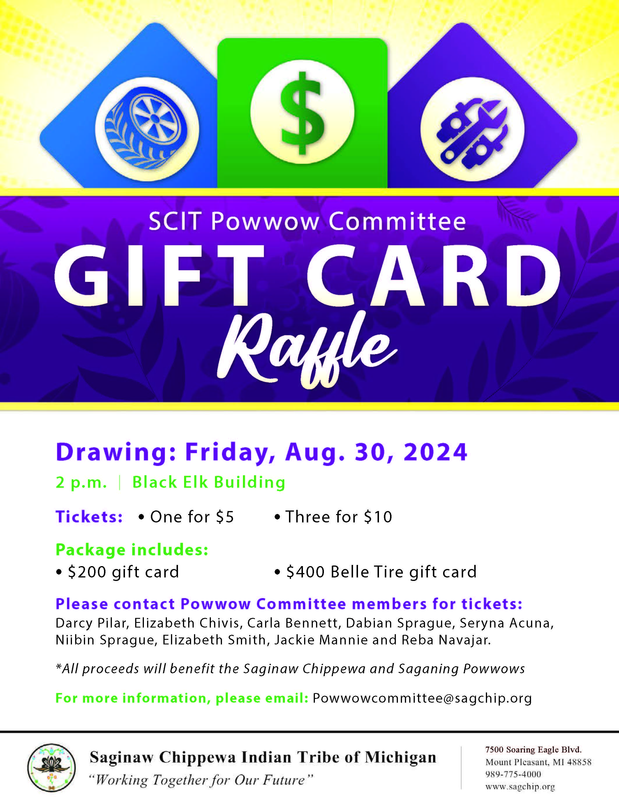 *All proceeds will benefit the Saginaw Chippewa and Saganing Powwows