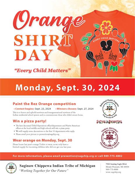 Are you ready to bring awareness to the community, department and schools? This will be a competition to “Paint the Rez” orange. This is to honor and uphold survivors and intergenerational survivors of the Indian residential school system and to commemorate those who didn’t return home.