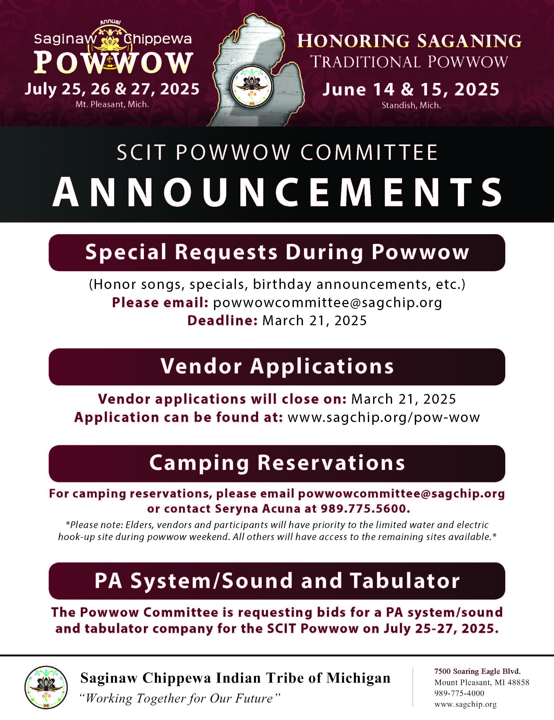 Powwow Information - Vendor Application & Special Request Deadlines
