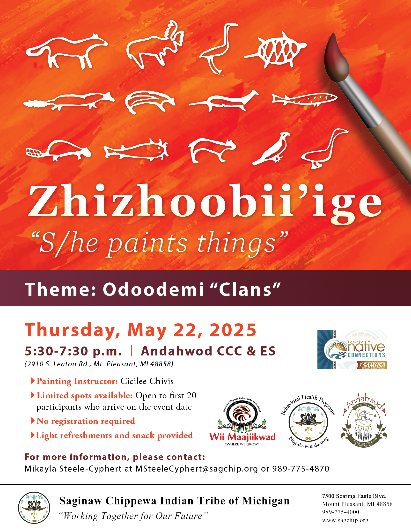 The Native Connections team would like to invite community youth and families to join us again this month for another night of painting at Andahwod.