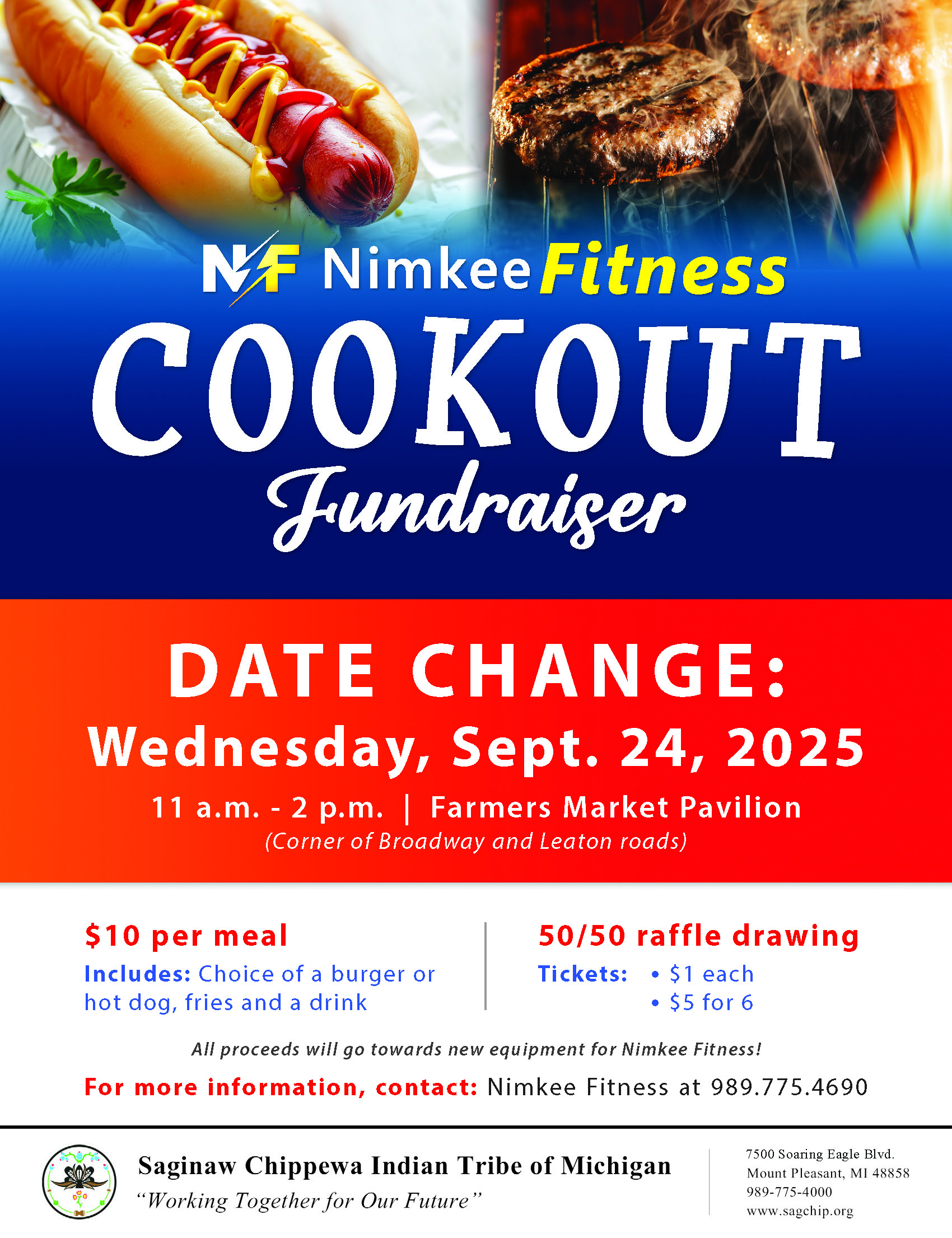 Come on out and Support Nimkee Fitness purchase a hot dog or hamburger with fries and a drink
