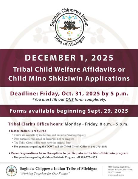 Tribal Child Welfare Affidavits or Child Mino Shkiziwin Applications -DECEMBER 1, 2025