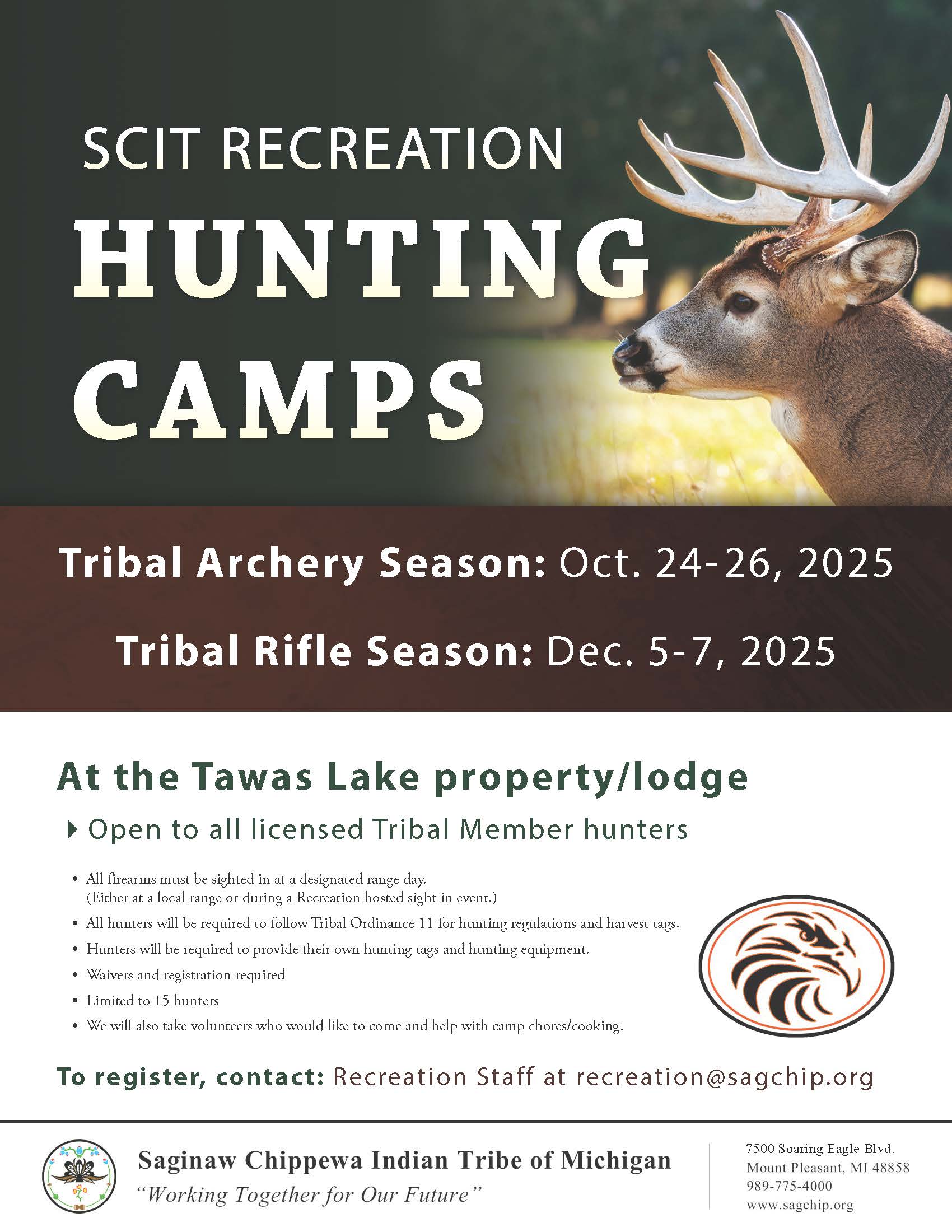 To register, contact: Recreation Staff at recreation@sagchip.org