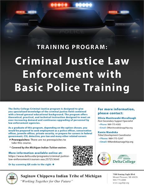 Have you always dreamed of being a Tribal Police officer? Want to serve your community and make a difference? Here is a Career Pathway to help get you started. We can help you get enrolled in Delta Colleges Criminal Justice Law Enforcement Program.