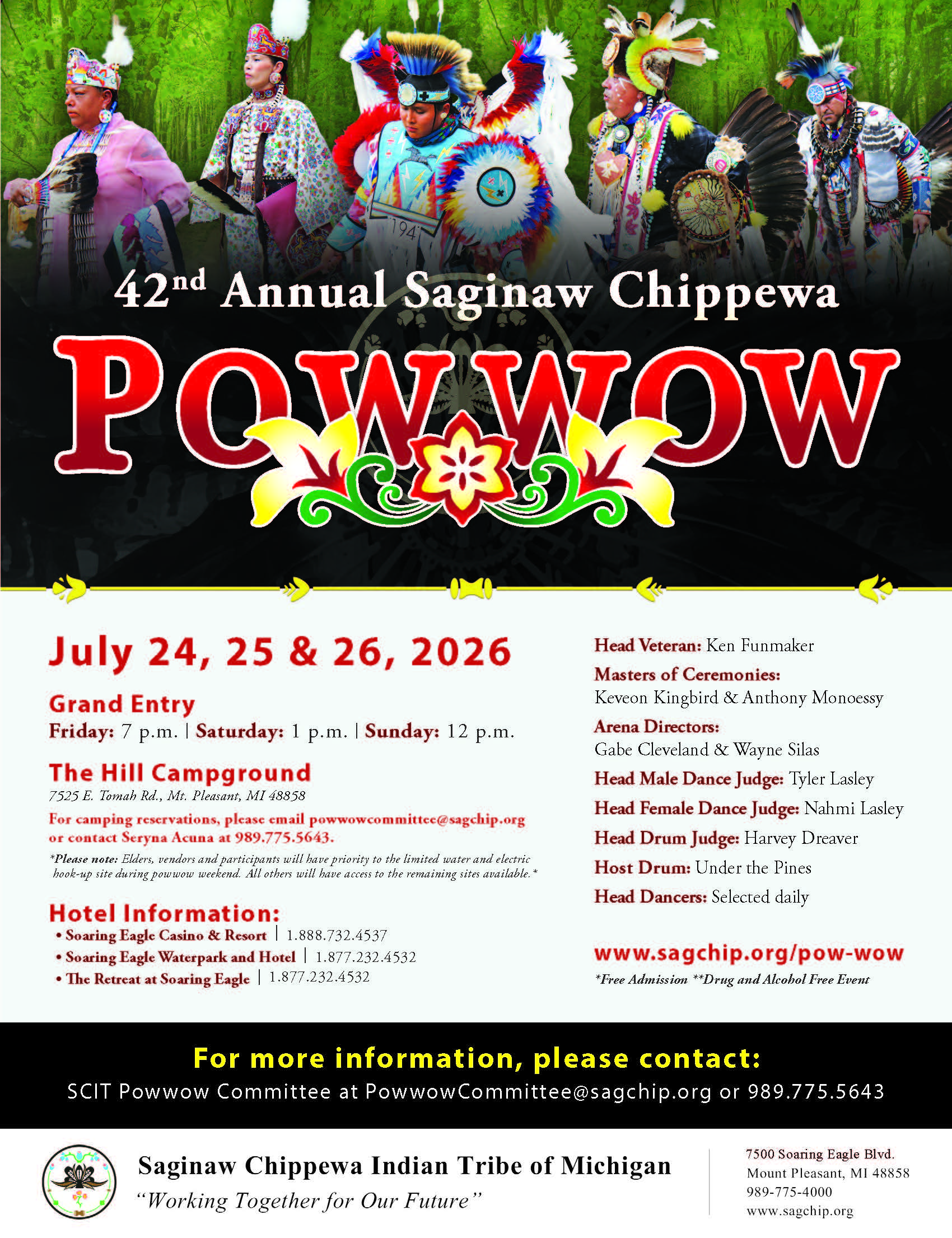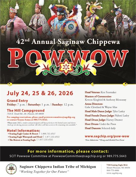 SCIT Powwow Committee at PowwowCommittee@sagchip.org or 989.775.5643