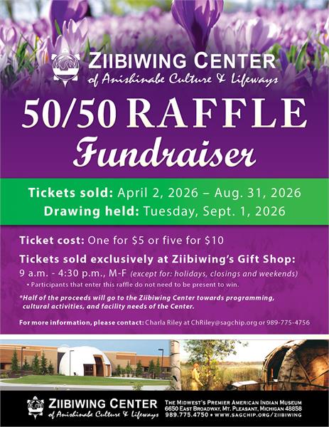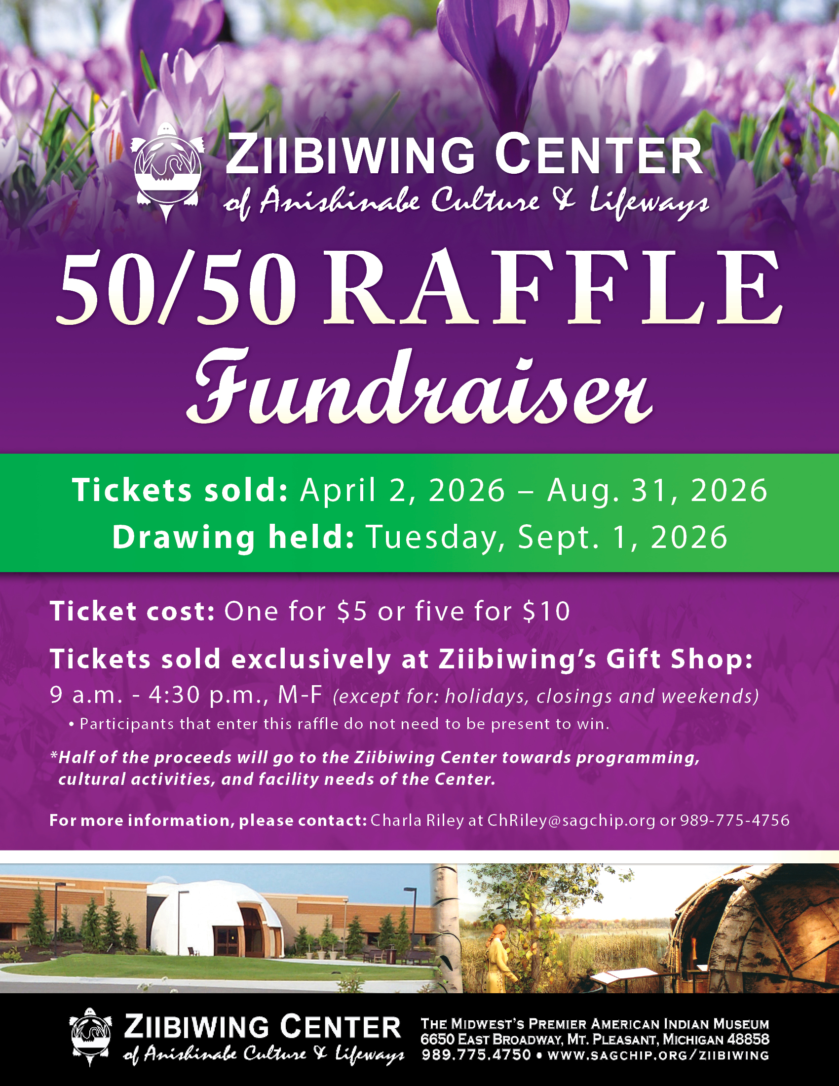 *Half of the proceeds will go to the Ziibiwing Center towards programming, cultural activities, and facility needs of the Center.